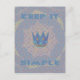 The central motif showcases a symbolic blue and gold crown, representing focus and inner royalty. This crown is set against a dynamic, geometric background: a soft lavender/light blue grid pattern overlaid with a radiating starburst in muted purples and creams. The powerful message "KEEP IT SIMPLE" boldly frames the top and bottom of the design in a coordinating light blue. This elegant combination of clean geometry and motivational symbolism in a sophisticated, lighter shade is ideal for anyone seeking clarity and a mindful approach to their daily life with a calm, understated aesthetic.