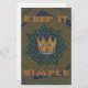 The central motif showcases a symbolic blue and gold crown, representing focus and inner royalty. This crown is set against a dynamic, geometric background: a brown/taupe grid pattern overlaid with a radiating starburst in muted purples and creams. The powerful message "KEEP IT SIMPLE" boldly frames the top and bottom of the design. This elegant combination of clean geometry and motivational symbolism in a sophisticated brown shade is ideal for anyone seeking clarity and a mindful approach to their daily life with a warm, understated aesthetic.