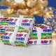 Each word boasts a unique and vibrant colour scheme, creating a delightful rainbow effect: