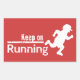 White text reads "Keep on Running" with a silhouette of a running man with a cap. Text is treated with mild grunge. Simple but great design for joggers, marathon runners etc to just focus on running.