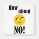 How about No! with a solid colour smiley face in yellow and text in black, Makes and awesome gift for that special someone in your life. Spread a little humour!