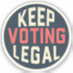Bold message round sticker in a vintage American style featuring “KEEP VOTING LEGAL” in patriotic red, cream, and navy. A powerful reminder of protecting democracy ahead of the 2028 elections. Ideal for voting rights activists, civic groups, classrooms, or campaign supporters showing commitment to fair elections.a