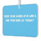 Stay safe and enjoy a delightful scent with our "Keep Your Hands at 10 and 2, and Your Nose at ‘Fresh’!" air freshener! This fun reminder emphasizes proper driving posture while ensuring your car smells amazing. Ideal for daily commutes, road trips, or as a thoughtful gift for any driver, this air freshener adds a touch of humour and freshness to your ride. Keep it safe, keep it fresh, and enjoy every drive!