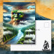 An illustration of a blue-eyed Bigfoot in the clouds, forest and river background. Great for anyone who is a fan of Sasquatch.