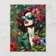 Have a beautiful day. A pretty postcard to send a friend or family member. Hyper realistic comic book style pretty woman sunglasses standing in a flower garden. Colourful ai art.
