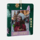 Celebrate the holiday season with this chic and modern personalized Christmas ornament—the perfect keepsake to cherish for years to come. Featuring a sophisticated deep green background, this ornament is adorned with trendy pastel and gold accents, including whimsical trees and delicate snowflakes that add a magical holiday touch. The front of the ornament showcases your cherished photo, bordered by a soft lavender frame, along with your name in elegant script and a bold “Merry Christmas” in modern typography. The gold “2024” adds a timeless detail, balancing the design while marking the special year.