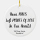 Keepsake Pet Photo With Typography Ornament. Introducing a Charming Round Ceramic Ornament, designed to hold your Cherished Pet's Photo with Ease. Simply Upload A PHOTO In Quick and Easy Steps. The Back of this Ornament Features the Heartfelt Script: ''Your PAWS Left PRINTS Of LOVE in Our Hearts''! Celebrating the Special Bond you share with your FURRY friend During this Holiday Season.