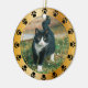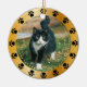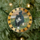 Get this beautiful keepsake round photo ornament for your pet! Simply add your photo, edit the script, and enjoy your custom ornament! Features a cute gold frame with pet paws around it, and on the back you can personalize the script with a name, message, and year to remember. This ornament is made of glossy ceramic and comes with a string to tie on and hang anywhere. Optional velvet pouch available for purchase with your gift order. See store for similar and different styles.