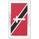 Patriotic keepsake TRINIDAD FLAG Tablecloth with Cross and Scripture Verse. Design shows the flag of TRINIDAD & TOBAGO with a white cross with drop shadow at the centre. A thick white border surrounds the flag, and includes placeholder name and Scripture verse on the long sides. THIS TEXT IS CUSTOMIZABLE, so you can replace with the name of your church or organization, or other text of choice. If you attach weights at the corners (not included), this tablecloth could possibly also be used as a PALL CLOTH at a funeral, and kept as a keepsake afterwards. Other flags and versions available.
