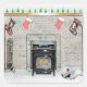 Keeshond Christmas Puppy Dog by Fireplace Painting Square Sticker