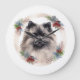 Keeshond Christmas Wreath Festive Pup Large Clock