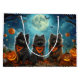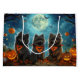 Unleash the spooky spirit with this eerie Halloween design featuring a pack of dogs under a dark, moonlit sky, surrounded by flying bats and glowing pumpkins. Perfect for those who love a touch of frightful fun with their furry friends!