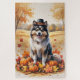 Keeshond In Autumn Leaves Thanksgiving Art Jigsaw Puzzle