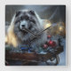 Keeshond Snowy Sleigh Christmas Decor Square Wall Clock