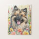 This puzzle features a watercolor portrait of the Keeshond — strong brushwork brings out every layer of its iconic double coat. No text or logos.
