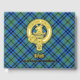 Clan Keith crest badge surrounded by a strap and buckle over tartan background. Custom front, back and spine text.