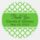 Kelly green quatrefoil pattern on white wedding thank you sticker.