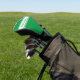 This design has a solid kelly green background colour with white stripes and a modern font. The name can be customized using the personalization options. This is a terrific gift for men, women, and junior golfers.