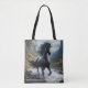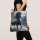Kelpie Reusable Shopping Bag: This dark folklore originates in Scotland where it is said that the rivers and streams there are haunted by a shape shifting water spirit. The Kelpie most often appears in the shape of a black horse but will also appear as an old man or a beautiful young woman. This malevolent creature is not kind. Its intention is to lure people to the waters edge where the Kelpie can then drag them under to drown so they can become its next meal.
