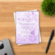 Elegant wedding save the date featuring your event details over a hand painted purple watercolor background.
