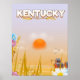 Kentucky USA farming cartoon poster of a warm evening sunset in the field surrounded by flowers.