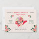 This feminine and eye-catching invitation is great to celebrate a bridal shower with a Kentucky Derby inspired theme. The design features a modern illustration of a woman's head with a fascinator, or hat decorated with flowers, bows, and feathers. This look is typical of the theme and sets the tone for a fun event. Roses decorate the corners for an added theme touch.