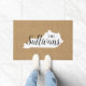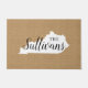 Modern farmhouse personalized doormat with your family name inside your state map. Faux burlap canvas texture background. Click Customize It to add your own text and images and create a unique one of a kind design!