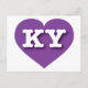 This postcard features a vibrant purple heart containing the bold, white, upper case letters KY, the official abbreviation for Kentucky, the bluegrass state. The reverse side of the card is blank, awaiting your customized text or handwritten sentiments.