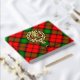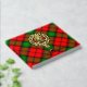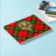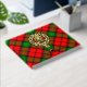 Clan Kerr crest badge surrounded by a strap and buckle over tartan background. Custom front, back and spine text.