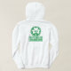 White hoody with kettlebellsireland.com shamrock logo on the back and green kettlebellsireland kettlebell on the front.