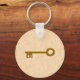 This printed illustration of an old brown key is on a printed parchment look pattern background.