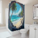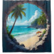 Key hole view of sun splashed beach and ocean shower curtain