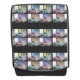 The colourful design on this Backpack was made from an original photograph by ZoeSPEAK of a bicycle parked outside a shop in Key West, Florida. Clothing from the shop hangs on the open door behind the bicycle. The photo is done in four colour schemes, red bike, blue bike, green bike and yellow bike, with corresponding clothing colours. The backgrounds are in muted shades of mauve and olive greys, and the overall background is a marbled black.