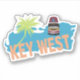 Key West, Florida with the silhouette outline of a map of the island, the name Key West, a palm tree, and the famous Southernmost Point marker.