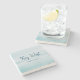 Gorgeous blue ombre watercolor highlights the longitude and latitude of Key West, Florida.