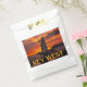 This Key West, Florida sunset image in vivid colours is a reminder of watching those beautiful sunsets from Mallory Square. The ocean is dark, the sky is orange and red, and the passing sailboats are romantic. The words "Key West" are in a fun font at bottom.