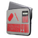 This unusual and quirky Laptop Case features a computer keyboard with red keys and white lettering, a red mouse, calculator with red keys and white lettering and matching red pen. The background and nameplate text can be changed to suit your own requirements.