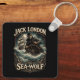 A dramatic nautical illustration of a hardened sea captain steering through storm-tossed waves, inspired by Jack London’s classic tale of survival and the wild sea.