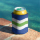 Can Cooler with a design with the flag of Burlington, Vermont. A blue, white, and green flag