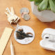 A classic button keychain showing a cute White-nosed Coati (Nasua narica), a member of the racoon (procyonidae) family, curled up in a tree and trying to take a nap.