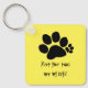 Keep your paws off my keys! is the text scratched beneath the print of a polydactyl cat'a paw. On back is a white area to hold your customized contact information.