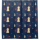 This shower curtain features a glowing pattern of knives, keyholes, and stars on a deep, dark blue background with subtle red and blue light bursts.