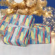 Diagonal brush strokes in vibrant colours create a repetitive pattern throughout the image. The strokes consist of blue, yellow, red, and beige hues intersecting rhythmically.