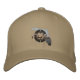 Fits well due to elastic edging, not adjustable. Good qualty material. Good quality embroidering. Subtle lettering (white on beige) just as my wife likes.