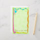 “Kick up your Heels” and enjoy the day. This stationery makes a delightful way to correspond and brighten someone’s day. Hand drawn art embellishes this collection with a tropical blue drink with flower accents and the words “Kick Up Your Heels”. A whimsy multi-colour border completes the design on a green background. Fully customizable to add printed messages!