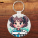 Looking for a fun and adorable accessory for your child's backpack or keyring? Look no further than this adorable keychain with a cute illustration of a Soccer Girl!