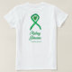 The green ribbon is used to both show awareness for kidney disease and for organ transplant or tissue donation awareness. There are many kinds of kidney disease including chronic kidney disease (CKD), diabetic kidney disease, IgA nephropathy, polycystic kidney disease (PKD), simple kidney cysts, kidney infection (pyelonephritis), and kidney stones. Customize this awareness ribbon t-shirt apparel with a personal awareness message. See more of our art at AwarenessGallery.com.