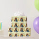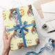 Yellow Birthday wrapping paper with cute teddy bear and duck coloured drawing. Personalize this kids birthday paper with your own name and age. Currently reads Happy Birthday Clara 3. Perfect for wrapping a special third birthday gift. Uniquely designed by Sarah Trett.