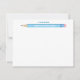 Kid's 'A Note From' flat card featuring a hand drawn pencil. Within the pencil is where the note card can be personalized. The colours are shades of blue with a splash of pink for the pencil eraser. This note card is ideal as a thank you card or a come to my party card or for a simple hello. These cute personalized note cards will help encourage your little one with their handwriting skills.