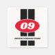 Kid's auto racing theme 9th Birthday party napkins. Cute automotive sports design with age number and name of child. Cool hot rod muscle car style racing stripes print. Also nice for car enthusiasts, classic car collectors, mechanic, dad, husband, brother, grandpa etc. Create paper napkins for boy, son, grandson, cousin, nephew etc. Customizable age i.e. 5th 6th 7th 8th 10th 11th 12th. Custom themed party supplies and accessories for home, school or office.
